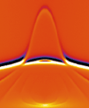 Специалисты Национального института стандартов и технологий США с коллегами из МТИ и IBM научились получать сведения о том, как края тонких металлических пленок влияют на их магнитные свойства. Ферромагнитные пленки толщиной от долей нанометра до нескольких микрон накладываются на подложку, например, в процессе изготовления жестких дисков. До сих пор не существовало способа определения магнитных свойств краев таких пленок, но с уменьшением площади поверхности пластин это становится все более необходимым. Исследователи спектроскопическим методом установили магнитные характеристики тонких никелево-железных пленок, размещенных в виде массива параллельных нанопроволок на кремниевой подложке. Их облучали микроволнами различных частот и измеряли возникающий при этом магнитный резонанс. (На фото: полученное спектроскопическое изображение. Пик в центре соответствует резонансам на краях полос.)