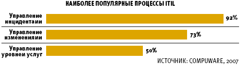 Половина западных компаний к 2010 году будет в полном объеме применять для организации ИТ-процессов стандарты ITIL 3, как прогнозирует Compuware. В настоящее время ITIL 3 лишь начинает находить признание, а процессы ITIL в организациях используются выборочно. По данным проведенного опроса, в 92% компаний реализованы процессы «Help Desk», 73% используют процессы управления изменениями (Change Management), а половина даже формализованно управляет уровнем ИТ-сервиса (Service Level Management). Однако лишь 11% пытаются оценить финансовые последствия плохого сервиса, хотя 79% и заявили, что оценивают эффективность ИТ-подразделений по стоимости обслуживания инфраструктуры и использования человеческих ресурсов. Что не может радовать, две трети компаний проводят анализ данных по оказанию ИТ-услуг вручную.