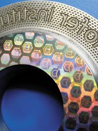 Изготовление переливчатых интерференционных изображений — голограмм, защищающих от подделки документы, банкноты и упаковки, начинается с формирования образа лазером на пленке с фоточувствительным покрытием. Полученный «негатив» с помощью гальванического осаждения переносится на более жесткий материал, обычно на никель. Затем с помощью никелевого штампа, закрепленного на валике, голограмма наконец переносится на полимерную пленку. В Химико-технологическом институте им. Фраунгофера нашли более радикальный подход к изготовлению голограмм, предложив переносить их на штамп не гальванически, а с помощью микровзрывов, что позволяет достичь гораздо большей разрешающей способности: минимальная толщина формируемых линий не превышает нескольких десятков нанометров. В качестве материала штампа при этом используется сталь, гораздо более износостойкая, чем никель.