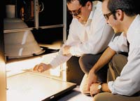 Исследование воздействия солнечного света на лакокрасочные покрытия, выполненное одним из учащихся докторантуры университета г. Суонси (Уэльс), вывело ученых этого учреждения Дэйва Уорсли и Тристана Уотсона (на фото) на новый способ преобразования солнечных лучей в электричество. Химики на протяжении нескольких десятилетий сотрудничали со сталепрокатной индустрией, разрабатывая покрытия, улучшающие износостойкость металла, но за пределы этой специализации вышли впервые. Созданные ими фотоэлектрические покрытия особенно эффективны при поглощении слабых солнечных лучей, что делает разработку более пригодной для британского климата. Исследователи сотрудничают с компанией Corus Colours, одним из крупнейших производителей стальных листов для обшивки зданий. За год Corus выпускает около 100 млн. кв. м таких листов. Даже при умеренном КПД в 5% солнечный элемент подобной площади мог бы генерировать 4,5 тыс. ГВт электроэнергии ежегодно.