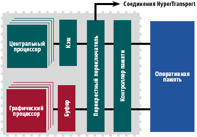 Несмотря на то что, как полагает большинство экспертов, AMD заплатила слишком большую цену за ATI, компания по-прежнему рассчитывает на то, что приобретенные ею графические технологии помогут ей превзойти Intel. Проект, получивший название Fusion, предусматривает интеграцию графических ядер в кристалл, уже содержащий ядра центрального процессора и контроллер памяти. Такое изменение архитектуры должно привести к снижению задержки и сокращению уровня энергопотребления.