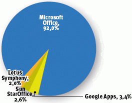 Еще 3,3% используют Google Apps, 2,6% — Sun StarOffice, а 2% — Lotus Symphony. Совершенно очевидно, что Microsoft Office удовлетворяет абсолютное большинство предприятий. Как иронизируют аналитики Forrester, возможно, приложения Microsoft работают слишком хорошо, с учетом того, что зачастую компании до сих пор используют Office 2003 и даже более старые версии. Мало кто обращает внимание на более дешевые альтернативные продукты. Что еще хуже, далеко не все организации, использующие альтернативные решения, удовлетворены своим выбором. 29% из них оценивают свою удовлетворенность на 2 балла по пятибалльной шкале, а 43% — на 3 балла.