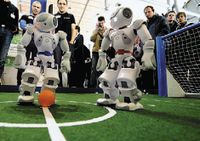 За весь турнир они забили 64 гола, а пропустили только один. На выставке CeBIT роботы выступили с показательной программой. Все операции — поиск мяча, передвижение по полю, удары — роботы выполняют самостоятельно, без вмешательства человека. Впрочем, быстро бегать они не умеют, так что темп игры пока невысок, а иногда роботы долго стоят на месте, оглядываясь в поисках мяча. Алгоритм поведения вратаря тоже требует доработки. Пока он просто занимает место в воротах, иногда смещаясь в сторону вслед за мячом, рассказывают разработчики. Команде из Бременского университета предстоит защищать титул летом этого года в Сингапуре.