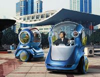 Двухколесный электромобиль с доступом к Интернету продемонстрирован компанией на выставке World Expo 2010 в Шанхае. Его аккумулятор можно заряжать от обычной розетки. Транспортное средство развивает скорость до 40 км/ч и может проехать до 40 км без подзарядки. Корпус EN-V изготовлен из углеродного волокна — крепкого и легкого материала. Электромобиль весит менее 500 кг, а его высота — около 1,5 м. Благодаря компактности на обычном парковочном месте может уместиться сразу до пяти таких автомобильчиков.