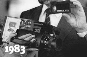 Немецкая компания Telefunken демонстрирует свой первый камкордер VHS-C на IFA-1983. Этот формат видеокассет, представляющий собой более компактный вариант VHS, был представлен годом ранее. Камера весила 1,9 кг.
