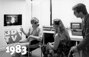 Производители электроники придавали стереотелевидению большое значение уже в 1983 году, когда Philips представила этот прототип на IFA. На заднем плане видны проигрыватели Laserdisk и домашний компьютер Philips P2000T на процессоре Z80 с тактовой частотой 2,5 МГц.