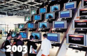 Корпорация Sharp была одной из пионеров рынка ЖК-телевизоров. Стена тонких плоскопанельных телевизоров, выставленная на стенде Sharp на IFA в 2003 году, привлекла к себе массу внимания. Сегодня трудно себе представить выставку потребительской электроники без подобной «телестены».