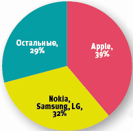 Выяснилось, что в этот период Apple продала 17 млн мобильных телефонов, тогда как суммарное количество проданных устройств ведущих производителей рынка — Nokia, Samsung и LG — составило 400 млн. Зато по прибыли Apple значительно опередила конкурентов: на его долю пришлось 39% общей прибыли. Nokia, Samsung и LG суммарно получили 32% общей прибыли. Аналитики объясняют это высокими показателями валовой и операционной прибыли Apple, которые составляют около 50% и более 30% соответственно, тогда как для большинства поставщиков обычной задачей является показать 10-процентную операционную прибыль.