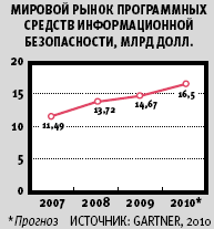 Бесспорный лидер мирового рынка программных средств информационной безопасности — Symantec; ее рыночная доля в 2009 году составила 20%, а оборот в этом сегменте почти достиг 3 млрд долл. Главные конкуренты — приобретаемая Intel компания McAfee, которая занимает в данном рейтинге прочное второе место, а также идущие следом Trend Micro, IBM и EMC и ряд других компаний.