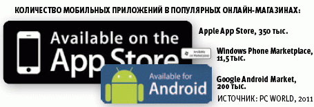 Журналисты PC World проанализировали список 35 наиболее популярных приложений в магазине Apple App Store и убедились в том, что многие из них существуют и в версиях для других систем: Android, Windows Phone 7, Palm, RIM BlackBerry и Nokia. Хотя App Store является самым крупным магазином приложений в мире, в Google Android Market, который почти в два раза меньше, можно найти все те же популярные приложения — правда, за исключением игр. Даже в обладающем пока небольшим ассортиментом магазине Windows Phone Marketplace нашелся почти весь список популярных приложений App Store. В Android Market нет только трех приложений из списка: игр Cro-Mag Rally и StickWars, а также клиента для видеосервиса Netflix. Для Windows Phone 7 нет восьми приложений, в том числе Google Earth.