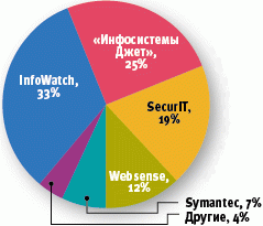 Объем рынка средств защиты от утечек данных (Data Leak Protection, DLP) в России в 2010 году показал значительный рост — с 15,3 млн долл. до 22,7 млн. Таким образом, темпы роста рынка составили 48%, что значительно выше прогнозируемых значений. По мнению аналитиков Anti-Malware.ru, это связано не только с отложенным спросом из-за влияния глобального экономического кризиса, но и в большей степени с возрастающим вниманием крупных коммерческих и государственных организаций к проблемам утечки конфиденциальных данных. Как и годом ранее, лидируют по объему продаж российские компании InfoWatch, «Инфосистемы Джет» и SecurIT. За ними следуют зарубежные производители Websense и Symantec. Характерно, что зарубежные компании в 2010 году сумели существенно «прибавить в весе». Websense значительно улучшила свои позиции, увеличив долю рынка на 4,5%, и теперь контролирует 12% российского DLP-рынка. Идущая за ней следом корпорация Symantec теперь занимает почти 7% — ее зона влияния расширилась на 2%.