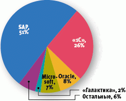 Объем российского рынка интегрированных систем управления предприятием в 2010 году составил 649,4 млн долл. По оценкам IDC, это соответствует годовому росту на 32%. Расширение рынка было обусловлено значительным спросом на средства бизнес-аналитики и управления отношениями с клиентами среди крупных компаний. Также динамично рос спрос на обширный комплекс решений среди предприятий малого и среднего бизнеса. Лидером рынка в 2010 году осталась компания SAP, доля которой составила 51%. За ней следуют «1С» и Oracle, а четвертое и пятое места достались Microsoft и «Галактике». Согласно прогнозам, рост данного сегмента российского рынка ИТ в ближайшие пять лет будет ежегодно расти в среднем на 15,5%.