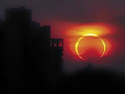 Специалисты агентства NASA создали интерактивную карту прохождения по миру кольцеобразного солнечного затмения 20-21 мая с помощью интерактивной карты Google. Кроме того, в агентстве подготовили мини-глобус затмения, показывающий продолжительность явления. А на сайте Shadow and Substance заранее было продемонстрировано, как затмение будет выглядеть в различных странах мира. Кольцеобразное затмение — редкое явление, когда Солнце закрывается Луной таким образом, что вокруг ее черного диска остается огненный ореол. Как отметили в NASA, любопытный эффект во время затмения можно было наблюдать, если просто сложить пальцы рук решеткой — проецируемые через ее отверстия на землю солнечные зайчики имели форму полумесяцев. Тот же эффект можно было наблюдать в тени листвы деревьев.