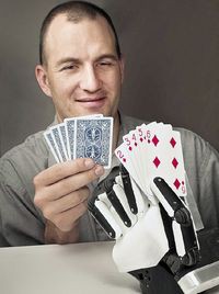В Национальной лаборатории Сандия Министерства энергетики США сконструировали робота-сапера, обладающего поразительной ловкостью рук. Его манипулятор благодаря 12 степеням свободы двигается практически как рука человека, что позволяет роботу аккуратно брать мелкие и хрупкие предметы и выполять с ними различные действия. Управляется роботизированная рука дистанционно с помощью специальной перчатки. Таким образом, появляется возможность удаленно разоружить взрывное устройство, не уничтожая его, чтобы сохранить улики. Благодаря гелеподобному покрытию рука может удерживать предметы не хуже человеческой. Робот даже может сам себя починить: если один из пальцев отвалится, оставшимися он нащупает деталь и установит на место. Как утверждают конструкторы, изготовление руки обошлось сравнительно недорого — в 10 тыс. долл.