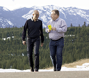 Фразу «мобильные технологии и облако превыше всего» Наделла произнес уже в первый день своего пребывания на посту генерального директора, и сегодня она стала главным девизом Microsoft, сменив концепцию «устройств и сервисов» Стива Балмера, провозглашением которой тот пытался дистанцироваться от ассоциаций Microsoft с контрактами в области продаж ПК и от ее вечного отставания от Google и Apple на мобильном рынке.