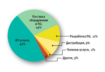 Темпы роста выручки крупнейших отечественных ИТ-компаний снизились с 22 до 2%. Как подсчитали в рейтинговом агентстве «Эксперт РА», суммарная выручка компаний, включенных аналитиками в рейтинг, составила 451 млрд руб. Поставки оборудования и программного обеспечения в рамках интеграционных проектов стали единственным направлением, где наблюдался спад, который составил 13%. Наибольшая доля выручки — почти половина — приходится на сегмент ИТ-услуг, который достиг 207 млрд руб. Самыми заметными темпами развивается направление разработки программного обеспечения. Согласно прогнозам, на ИТ-рынке продолжится снижение выручки в сегменте интеграционных поставок, а подстегивать рынок продолжат ИТ-услуги. Что касается заказчиков, то заметную их долю в ближайшее время займет госсектор.