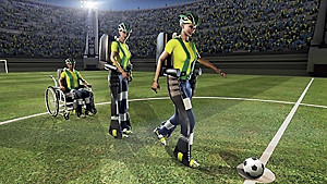 На церемонии открытия чемпионата мира по футболу первый удар по мячу сделал парализованный Хулиано Пинто — с помощью управляемого головным мозгом роботизированного экзоскелета. Он создан в рамках международного проекта Walk Again. Система обучается, регистрируя электрическую активность мозга и ставя различные ее картины в соответствие намерениям. Более того, она дает пациенту тактильную обратную связь с помощью чувствительной искусственной кожи CellulARSkin, представляющей собой самоорганизующуюся сеть поверхностных датчиков. Каждая «чешуйка» кожи — плоский шестиугольник с микропроцессором и датчиками близости, давления, вибрации, температуры и движения. Любое количество таких ячеек можно соединить в сеть. Ячейки CellulARSkin, размещенные на подошвах экзоскелета, передают свои «ощущения» пациенту путем вибрации.