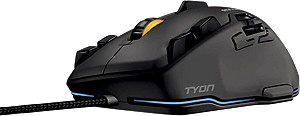 Новая игровая мышь ROCCAT Tyon создана в тесном сотрудничестве с профессиональными геймерами. Благодаря клавише-дубликатору ROCCAT Easy Shift [+] в модели фактически есть 16 назначаемых кнопок и возможность настройки 31 функции. Предусмотрен двусторонний аналоговый рычаг X-celerator, который также добавляет удобства управлению в игрушках. Еще одна особенность ROCCAT Tyon — спинной «акулий плавник», установленный за колесом мыши и наклоняемый в двух направлениях, что способствует комфортной работе среднего пальца. За передачу движений игрока отвечает лазерный датчик 8200 DPI PRO AIM (R3). А еще в новой мыши имеется 576 Кбайт памяти, предназначенной для хранения настроек и макросов, и возможность выбора подсветки из 16,8 млн цветов и оттенков.