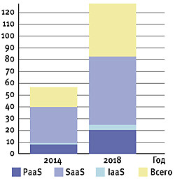 Мировой рынок публичных облачных сервисов (млрд долл.) Источник: IDC, 2014 |