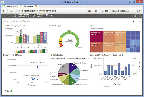 Средства легкой визуализации, быстрого создания информационных панелей и интерактивного построения отчетов помогают снизить зависимость бизнес-пользователей от ИТ-службы, которая часто перегружена растущим потоком запросов на создание новых отчетов и не всегда успевает их выполнять. Благодаря централизованным управляемым библиотекам данных, параметров и объектов аналитические приложения в Qlik Sense создаются путем перетаскивания объектов, и у пользователя нет необходимости настраивать связи между ними или писать SQL-запросы. При этом можно быстро загружать и комбинировать собственные данные из нескольких источников. Предполагается, что пользователи смогут применять собственные подходы к извлечению знаний из множества источников и восполнять возможные пробелы, возникающие при использовании других BI-инструментов.