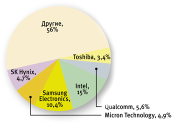В 2014 году мировой объем продаж микроэлектронных компонентов составил 339,8 млрд долл., что на 7,9% больше, чем в 2013 году, сообщает Gartner. При этом суммарный объем продаж 25 крупнейших производителей вырос на 11,7% — больше, чем в среднем по рынку, а суммарная доля их в общем объеме рынка выросла с 69,7% до 72,1%. В 2014 году рост был отмечен во всех категориях микроэлектронных компонентов, но рынок микросхем памяти всех видов рос быстрее всех остальных сегментов и по итогам года увеличился на 16,9%. Больше всего от этого выиграли компании SK Hynix и Micron Technology, нарастившие продажи на 26,1% и 41% соответственно. Остальной рынок вырос в общей сложности на 5,4%. Корпорации Intel после реорганизации удалось возобновить рост. По оценкам аналитиков, в 2014 году она заработала 50,8 млрд долл., что на 4,6% больше, чем в 2013 году.