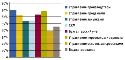 В «1С» обнародовали статистику внедрения своего флагманского решения «1С: ERP управление предприятием 2.0» в крупных компаниях. Почти половина заказчиков входит в холдинги, причем 75% работают в сфере промышленности. Как подчеркивают в «1С», в 85% проектов функционал «1С: ERP 2.0» внедряется либо вовсе без доработок, либо с незначительными доработками. Под небольшими доработками подразумевается изменение не более 10% программного кода, а под существенными — до 30%. В «1С» обнародовали статистику внедрения своего флагманского решения «1С: ERP управление предприятием 2.0» в крупных компаниях. Почти половина заказчиков входит в холдинги, причем 75% работают в сфере промышленности. Как подчеркивают в «1С», в 85% проектов функционал «1С: ERP 2.0» внедряется либо вовсе без доработок, либо с незначительными доработками.