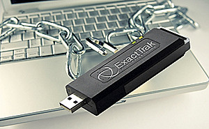 Компания ExactTrak выпускает безопасные USB-флешки со встроенными SIM-картой и технологией GPS, которые позволяют дистанционно управлять хранящимся на накопителе контентом. Если устройство ExactTrak по ошибке было забыто в гостинице или на вокзале, на него посылается сигнал, блокирующий попытку переноса данных. Возможен и физический вывод устройства из строя путем подачи короткого высоковольтного импульса со встроенной батареи.