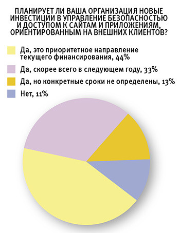 Подавляющее большинство (77%) из 239 участников опроса из США и Великобритании, отвечающих за принятие решений в области ИТ-безопасности, указали, что их компании планируют новые инвестиции в управление безопасностью и доступом к сайтам и приложениям, ориентированным на внешних клиентов.