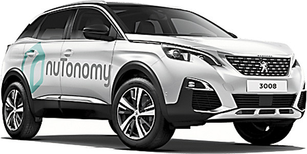 Стартап NuTonomy, созданный двумя специалистами по робототехнике из МТИ, приступил к испытаниям самоуправляющихся автомобилей. Соглашение с Groupe PSA, выпускающей автомобили под маркой Peugeot, предусматривает оборудование системой автоматического управления кроссоверов Peugeot 3008. Системы управления экспериментальных машин Groupe PSA соответствуют третьему и четвертому уровню автономности по классификации ассоциации SAE. На третьем уровне системе еще требуется вмешательство водителя, тогда как на четвертом уровне система может реагировать на неожиданные события самостоятельно. Peugeot 3008 с системами NuTonomy смогут, как предполагается, работать на пятом уровне, что подразумевает полную автономность.