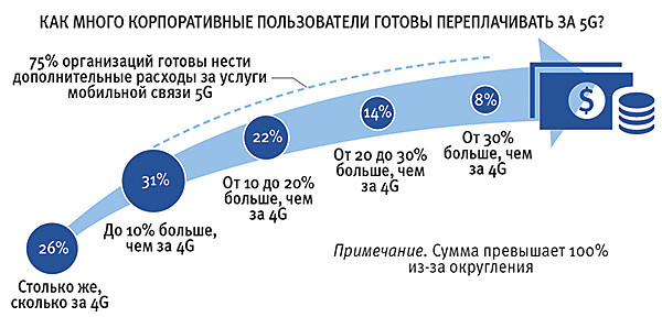 Опрос, проведенный аналитиками Gartner, показал, что 75% организаций готовы нести дополнительные расходы за услуги мобильной связи 5G, тогда как 24% опрошенных не намерены платить за 5G больше, чем за 4G.