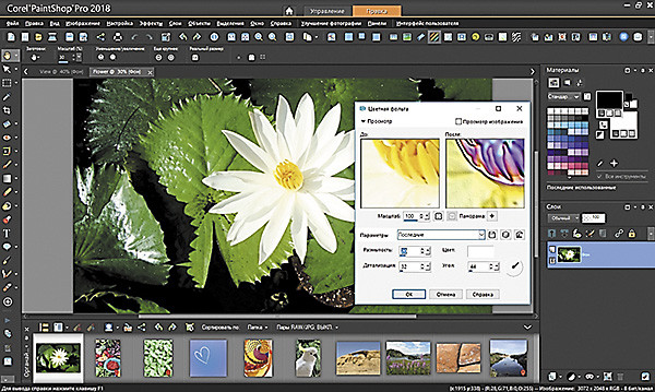 Компания Corel вывела на рынок комплексное решение PaintShop Pro 2018 для редактирования фотографий и графического дизайна. В программу входит коллекция из более чем 125 элементов: кистей, градиентов, текстур и узоров. В ней появились два новых рабочих пространства, каждое из которых соответствует определенному уровню подготовки пользователей. Новое рабочее пространство «Основы» просто в использовании, а для опытных пользователей PaintShop Pro было создано рабочее пространство «Полная версия», которое предлагает классический интерфейс с полным набором инструментов для разработки дизайна и редактирования фотоснимков. В программе появились дополнительные возможности настройки, обеспечивающие изменение размеров узла и полосы прокрутки. Новые увеличенные значки облегчают работу на сенсорных экранах, устройствах «два в одном» и мониторах высокого разрешения. Новая функция быстрой настройки позволяет выбирать и устанавливать на панели инструментов только необходимые функции. PaintShop Pro 2018 включает 10 новых цветовых палитр, 30 новых кистей, столько же новых градиентов и текстур, 15 новых узоров. Запуск PaintShop Pro 2018 более чем на 50% быстрее, чем у ее предшественницы (X9). Максимально сократилось время отклика самых популярных инструментов фоторедактора, ускорен темп работы инструмента «Обтекание текстом», настройки глубины резкости срабатывают в четыре раза быстрее, чем раньше.