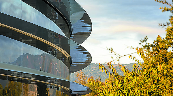 Комплекс общей площадью 260 тыс. кв. м, похожий на «летающую тарелку», отделанную изогнутыми стеклянными панелями, создан в соответствии с замыслом Стива Джобса Источник: Apple |