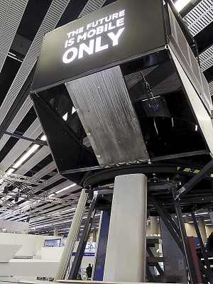 | Для продвижения Mobile Cyber Range в ходе выставки Mobile World Congress в феврале 2018 года на стенде LMT была сооружена настоящая орудийная башня |