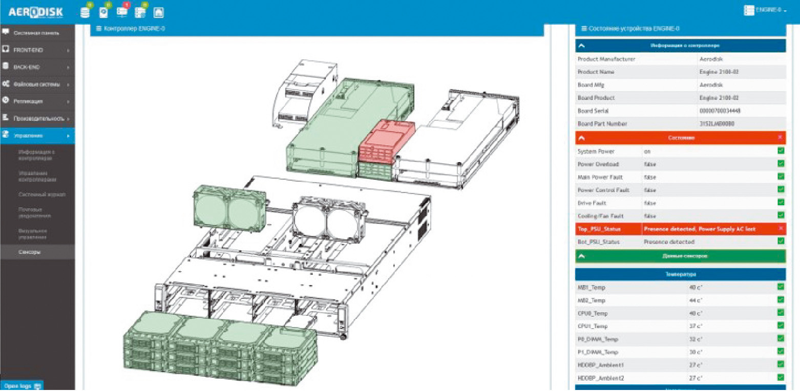 | Интерфейс управления программно-определяемой СХД AERODISK ENGINE | |