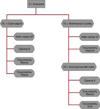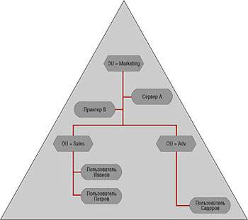 В AD все имена должны быть уникальными несмотря на то, что она имеет иерархическую структуру, порой весьма сложную, на уровне домена. (В NDS уникальность имен должна быть обеспечена лишь на уровне контейнера, что гораздо удобнее.) В результате необходимости обеспечения уникальности имен и невозможности назначить контейнеры AD принципалами безопасности иерархия на уровне домена AD имеет мало смысла.