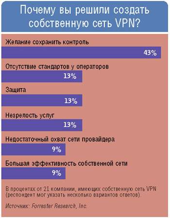 | Рисунок 2. Как следует из отчета Forrester Research, значительное число организаций не желает доверять обслуживание своей VPN другим компаниям. Потеря контроля — главная причина отказа от обращения к сторонним услугам (она типична для аутсорсинга вообще). |
