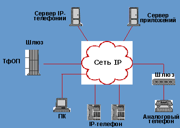 | Рисунок 2. Серверы обработки телефонных вызовов осуществляют установление и разъединение телефонных соединений, направляют пакеты по выбранному маршруту на IP-телефоны или через шлюз во внешнюю телефонную сеть. |