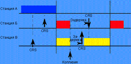 Схема координации доступа в локальной сети посредством CSMA/CD.