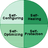 ![]() | Рисунок 1. Самооптимизация, самоконфигурирование, самовосстановление и самозащита — четыре составляющих проекта eLiza. Под автоматической конфигурацией (self-configuring) понимается определение новых аппаратных ресурсов и динамическое распределение ресурсов ОС. Автоматическое восстановление (self-healing) позволяет выявить и локализовать неисправности в работе оборудования или встроенного ПО, |