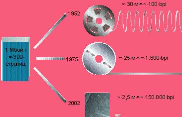 Несмотря на вечно повторяющиеся предсказания о неизбежном отказе от магнитных лент в качестве среды хранения данных, в компании Imation ежегодный прирост общего количества хранящихся данных составляет 22%. В 2006 г. их объем достигнет 8500 Пбайт, а в 2003 г. Imation рассчитывает на 2700 Пбайт. Специалисты компании Gartner Dataquest полагают, что даже с учетом застоя на рынке ленточных накопителей его объем не меньше 2,7 млрд долларов. Прежде всего изменения затронули области высокопроизводительных и корпоративных систем, в то время как информация с малых серверов хранится на громоздких ленточных накопителях устаревших модификаций. Скорее всего, магнитные ленты проиграют битву за домашние и отдельно стоящие компьютеры. В данном случае куда более выгодными, простыми в обслуживании и доступными являются оптические носители.