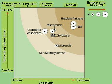 Претензии на динамичность идеологии «ресурсов по требованию» обостряют ситуацию. Аналитики считают, что лучшие позиции занимают HP и IBM (см. Рисунок 1).