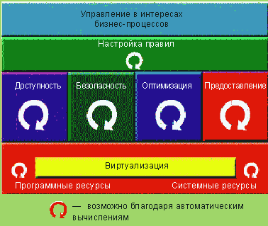 Гиганты отрасли информационных технологий — прежде всего IBM и Hewlett-Packard, а также такие компании, как Sun и Computer Associates, — уже вдохновенно рисуют картину полностью автоматических вычислительных центров «по требованию». До самостоятельной динамической адаптации ресурсов ИТ под изменяющиеся деловые процессы пока еще далеко, однако производители интенсивно работают над механизмами автоматизации.