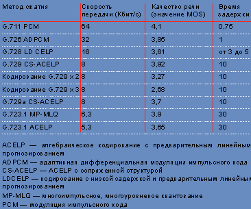 | Таблица 1. Сравнение различных кодеков для сжатия речи. |
