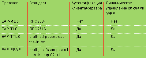 Таблица 1. Варианты EAP.