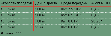 | Таблица 1. Межкабельное переходное затухание в 10 Gigabit Ethernet. |