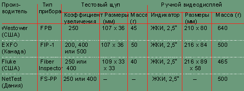 Технические характеристики телевизионных микроскопов с выносным тестовым щупом.