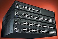 Для подключения порождающих интенсивный трафик серверных ферм появляется все большее количество устройств с 16, 24, 32 или 48 портами Gigabit Ethernet, которые весь этот трафик направляют в ядро сети через один или два канала 10GigE. Catalyst 3750G-16TD от Cisco, к примеру, объединяет 16 медных портов в один канал с пропускной способностью 10 Гбит/с. Сильную конкуренцию Cisco составляют Foundry и Extreme. Недавно представленные коммутаторы FastIron Edge от Foundry серии X (см. Рисунок 3) собирают трафик от 24 или 48 портов Gigabit Ethernet в два канала 10GigE — при вполне конкурентной цене в 8795 долларов за Х448 плюс 7195 долларов за два оптических интерфейса. Extreme со своим устройством Summit 400 предлагает за 9995 долларов агрегационный коммутатор с 48 портами 10/100/1000BaseT и коммутирующей матрицей, производительность которой составляет 160 Гбит/с. Устройство дополнительно оснащается двумя портами 10 Гбит/с по цене 16 тыс. долларов за сменный модуль и оптические компоненты.