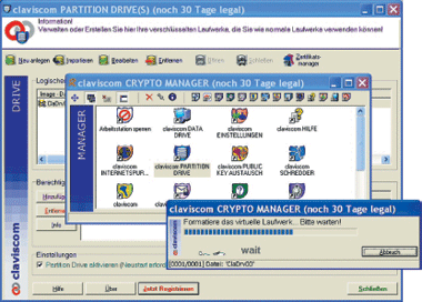 Чего не достает инструментам от Eldos, так это архива, к которому несколько пользователей могли бы обращаться одновременно. Такую возможность предлагает также базирующийся на Х.509 продукт Claviscom Crypto Pro с «дисками данных» и «дисками разделов» (виртуальные разделы для Windows XP). Менеджер сертификатов системы работает со службами каталогов LDAP и списками запрещенных объектов, а при необходимости создает на какой-либо машине в сети собственную миниPKI. С его помощью пользователь может указать созданному им шифруемому хранилищу сертификаты тех его коллег, кто имеет право с ним работать, и определить для них права доступа (см. Рисунок 3). Сам накопитель, с точки зрения внешнего наблюдателя, выглядит как единый связный файл.