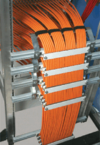 Разработчики используют несколько решений. Например, на входе шкафа устанавливается распределительная гребенка, а в корпусе конструктива монтируются гибкие и достаточно прочные направляющие элементы, позволяющие выполнить аккуратную прокладку отдельных кабелей вблизи активного оборудования и коммутационных панелей.