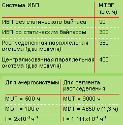 | Таблица 1. Сравнение величины MTBF для различных систем ИБП. Таблица 2. Сравнение надежности сетей общего пользования и сегмента распределения. |